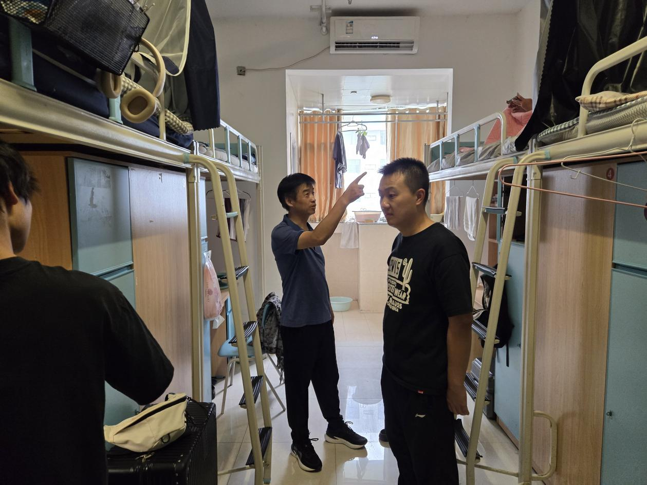 检查过程中,班主任深入班级学生宿舍与同学们亲切交流,内容涵盖日常学习、生活状况及未来规划等多个方面,传递温暖与关怀,针对学生关心的学习生活问题及时解答,并对假期中的交通出行安全、消防安全、食品卫生安全、居家安全、防溺水安全、谨防电信诈骗等作温馨提示。