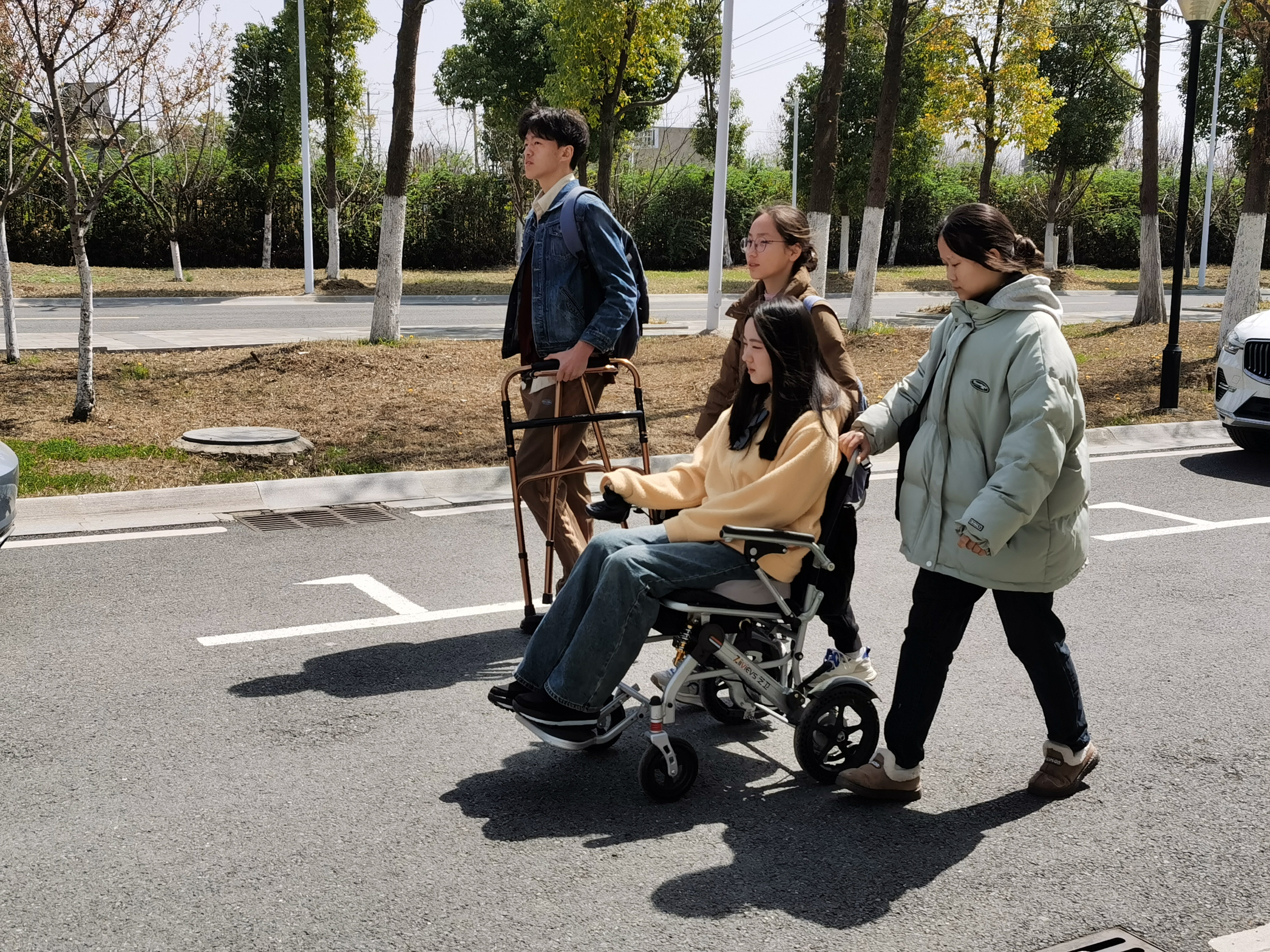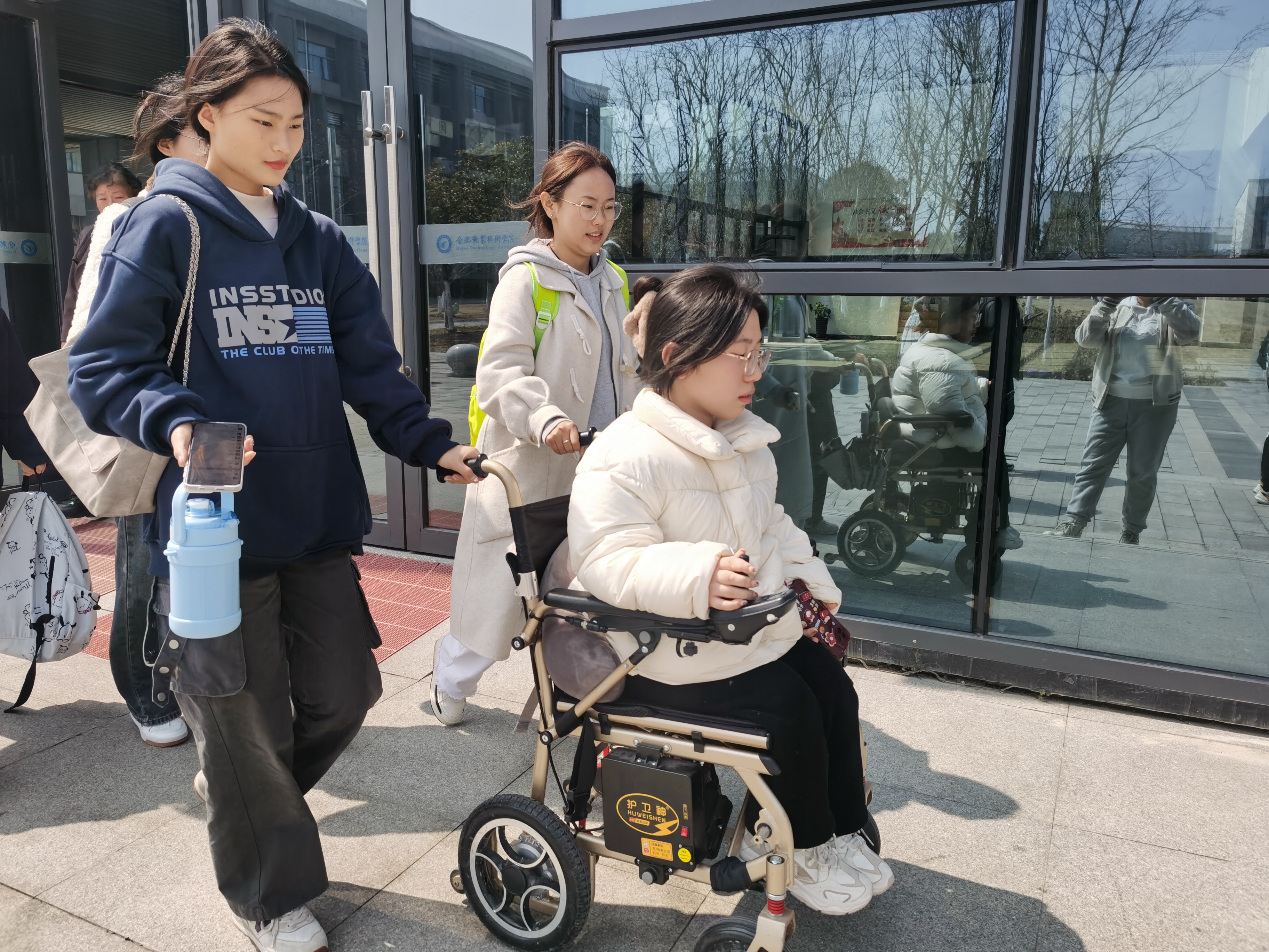 来自2023级物联网2班的丁灿同学和2023级动漫1班的张孚颖被疾病夺走了自由行走的能力,平时靠轮椅代步。为了帮助他们更好地融入集体,班级同学们共同行动起来,努力为他们打造一个无障碍的学习生活环境。从入学的第一天起,同学们接续在她们上课、放学、用餐途中,搀扶轮椅,帮提物品。