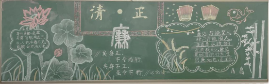 “清廉”对大学生而言,其基本要求是遵纪守法、诚实守信、勤俭节约、远离腐败、遵守职业道德等。通过学习与绘制此次黑板报,相信学生们一定能坚定信念,始终自省自重,严守法纪,做一个一心为公、一身正气的追梦者。