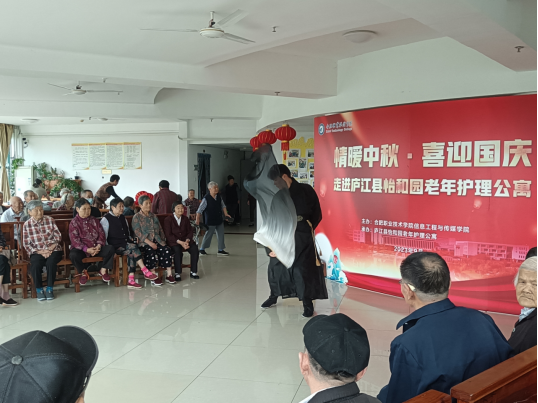 秋风送爽,丹桂飘香,为弘扬中华民族尊老敬老爱老助老的传统美德,在“中秋、国庆”双节来临之际,永利集团304am登录组织学生带着精心编排的节目,走进庐江县怡和园老年护理公寓,为老人们送上了一场精彩的文艺盛宴。