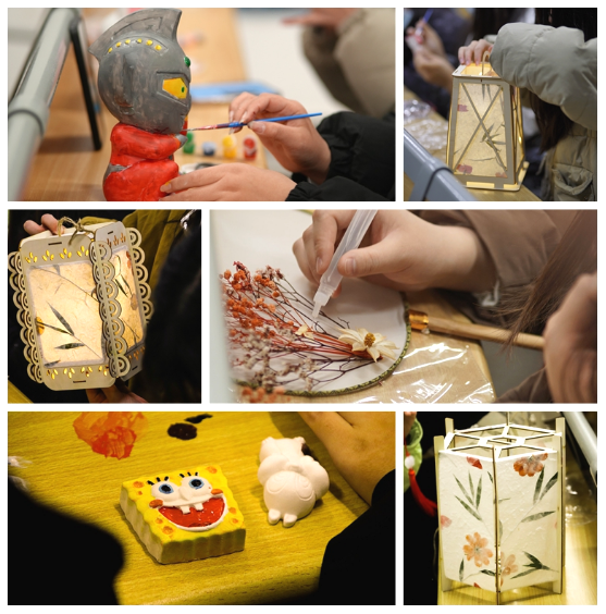 同学们齐心协力、集思广益,随着一件件独一无二、精美绝伦的作品展现在大家的面前,抑制不住的喜悦挂满了每一张脸上,活动也逐渐进入了尾声。摄影社的同学们也记录下这美好的一刻,定格这一时光。每一件作品都留下了自己的影子,同学们也聚集在一起与自己的作品留影纪念。
