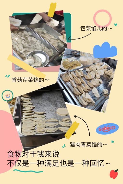 当天的活动现场热闹非凡。同学们提前准备好了面粉、饺子馅等材料以及面板、擀面杖,其乐融融坐在一起和着面、调着陷、包饺子、煮饺子。饺子煮熟了,同学们围坐在一起快乐地品尝自己的劳动成果,一步步动手操作,最后成功吃到了自己亲手包的饺子,同学们都洋溢着幸福的笑容,虽然饺子不是第一次吃,自己亲手做的却格外的香。