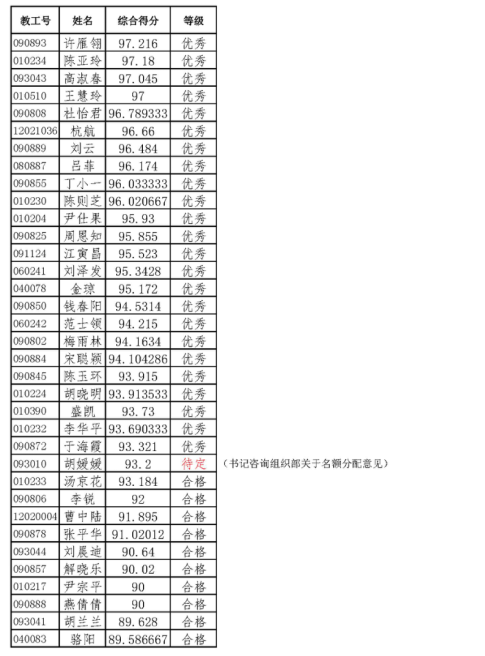 根据《关于开展永利集团304am登录2023年度师德考核工作的通知》文件精神,学院按照《关于开展永利集团304am登录2023年度师德考核的通知》工作安排,经教师个人自评、学生测评、民主评议、综合评定(辅导员和有教学任务的教师,按照个人自评占10%,单位考核占50%,学生评价占40%;其他人员按照个人自评占40%,学院考核占60%),现将2023年度师德考核结果予以公示。