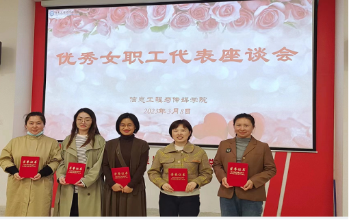 当天下午,学院在信息楼一楼会议室召开了优秀女职工代表座谈会。主持院党总支工作的尹仕果同志出席会议。会议由分工会主席刘泽发主持。与会代表围绕节日祝贺和学院发展主题逐一发言。最后,尹仕果同志从三个方面做了总结讲话:一是女教师们了不起,令人敬佩。女教师们扮演着多重角色,奋战在家庭和学校两个平台,忍辱负重,默默奉献,令人敬佩!二是女教师撑起学院的“大半边天”,作用不可替代。目前学院共有教职工73人,其中女职工43人,占比近60%。学院共有三个教研室,女教师在艺术教研室占比95%以上,在信息技术教研室占比75%,在网络教研室占比近50%。女教师在学院过去的发展中起到了举足轻重的作用,学院未来的发展更加离不开她们。三是学院的发展已经从“数量增长,规模扩张”的外延式发展阶段进入到“求质量,练内功”的内涵式发展阶段。质的飞跃的背后需要全院上下同心协力、顽强拼搏,才能再上新台阶。希望作为学院“大半边天”的女教师们再展巾帼风采,为学院的发展再立新功!