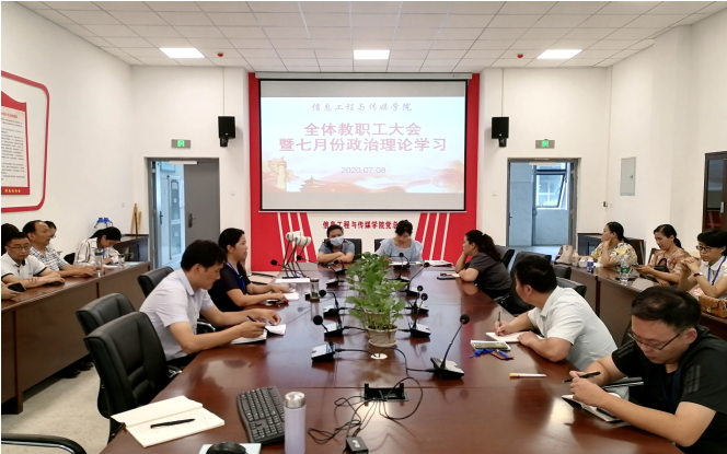7月8日上午,永利集团304am登录在信息楼103会议室召开全体教职工大会暨七月份政治理论学习会议。学院全体教职工参会,会议由院党总支书记李红雨主持。